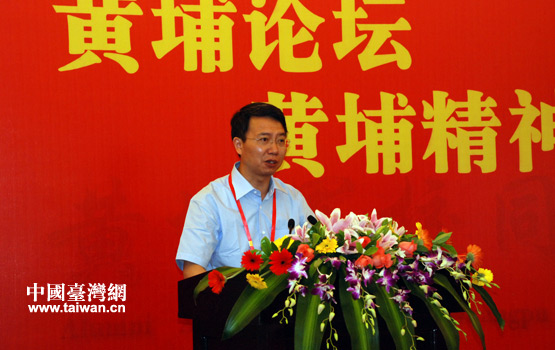 黃埔軍校同學(xué)會秘書長杭元祥主持論壇。(中國臺灣網(wǎng) 李丹 攝)