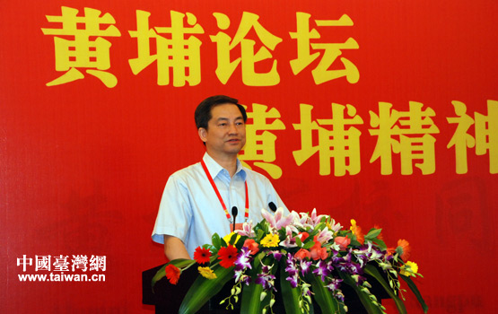 國防大學教授、《義勇軍進行曲》詞作者田漢之孫歐陽維在會上發(fā)言。(中國臺灣網(wǎng) 李丹 攝)