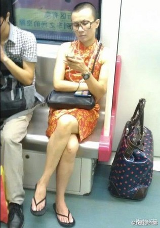 “女版文章”穿旗袍搭乘臺(tái)灣捷運(yùn)。(圖片來自網(wǎng)絡(luò))