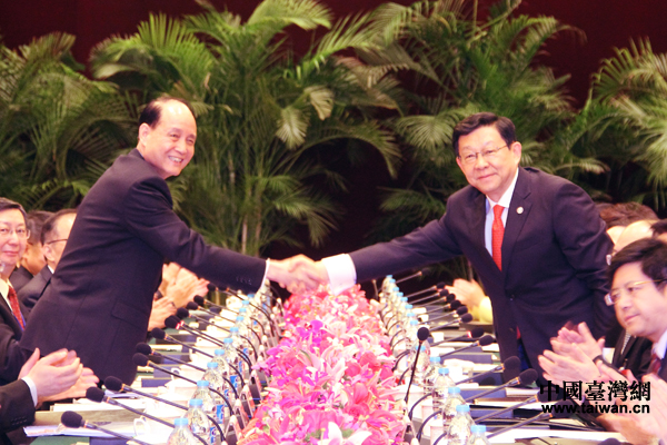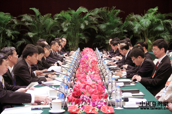 中國臺灣網(wǎng)6月21日上海消息 兩岸兩會領(lǐng)導人第九次會談21日上午在上海東郊賓館紫金廳舉行。會議由海協(xié)會會長陳德銘與;鶗麻L林中森共同主持。這是兩岸兩會2008年6月恢復制度性協(xié)商以來第五次在大陸舉行會談。會談中,雙方就兩岸兩會今天即將簽署的海峽兩岸服務貿(mào)易協(xié)議及其附件,進行最終的意見交換并確定。(中國臺灣網(wǎng)記者 于斯文 何建峰)