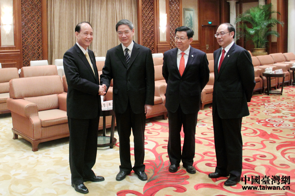 中共中央臺辦、國務(wù)院臺辦主任張志軍21日在上海會見了臺灣海基會董事長林中森一行。海協(xié)會會長陳德銘等參加會見。(中國臺灣網(wǎng) 于斯文 攝)