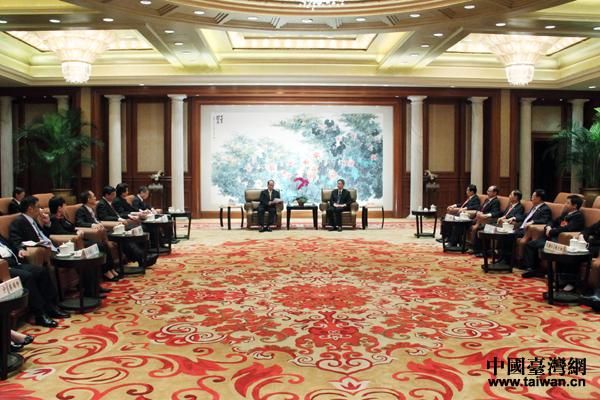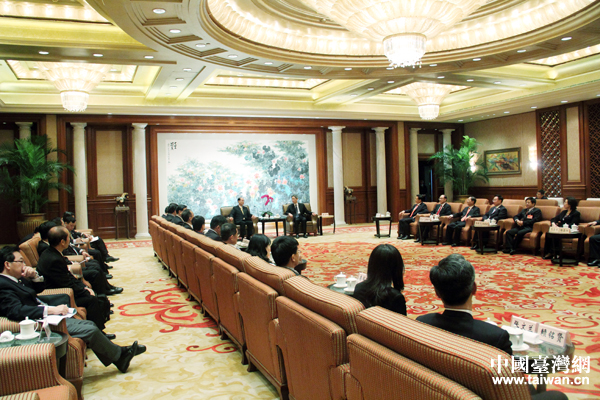 中共中央臺辦、國務(wù)院臺辦主任張志軍21日在上海會見了臺灣;鶗麻L林中森一行。海協(xié)會會長陳德銘等參加會見。(中國臺灣網(wǎng) 于斯文 攝)