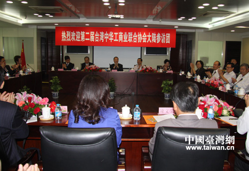 中國(guó)臺(tái)灣網(wǎng)6月24日北京消息 今天上午,以臺(tái)灣中華工商業(yè)聯(lián)合協(xié)會(huì)主席、臺(tái)灣青商總會(huì)第52屆總會(huì)長(zhǎng)李玉文為團(tuán)長(zhǎng)的“第二屆臺(tái)灣中華工商業(yè)聯(lián)合協(xié)會(huì)大陸參訪(fǎng)團(tuán)”一行34人,赴北京拜訪(fǎng)了民革中央機(jī)關(guān)。全國(guó)政協(xié)常委、民革中央副主席、中華中山文化交流協(xié)會(huì)副會(huì)長(zhǎng)兼秘書(shū)長(zhǎng)鄭建邦會(huì)見(jiàn)了參訪(fǎng)團(tuán)一行,雙方就如何更好地開(kāi)展兩岸民間交流和造福兩岸同胞等共同關(guān)心的話(huà)題坦誠(chéng)交換了意見(jiàn)。