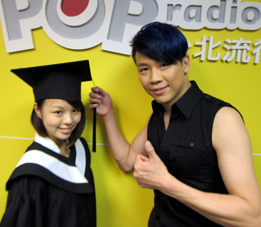 陶喆(右)遇到即將畢業(yè)的電臺工讀生歌迷,邀請偶像為她圓夢播穗。(圖片來自臺媒)