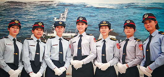 臺灣“海巡署巡護(hù)九號”昨日舉行成軍典禮,有7名女官兵負(fù)責(zé)禮賓、接待;讓壯盛的陣容中增添幾許柔氣,媒體更是“列陣”搶拍“女仙兵”。