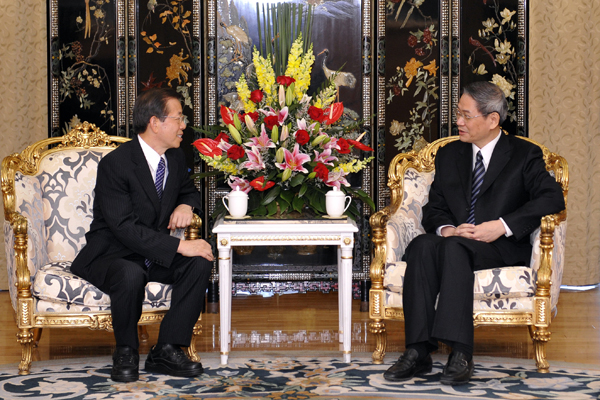 國務(wù)院臺灣事務(wù)辦公室主任張志軍30日下午在深圳會見了臺灣維新基金會董事長謝長廷,雙方就兩岸關(guān)系和平發(fā)展問題交換了意見。(新華社 梁旭 攝)