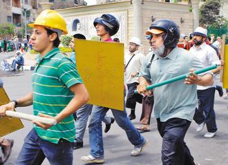 埃及總統(tǒng)穆?tīng)栁鞯恼䴔?quán)岌岌可危,支持者二日戴頭盔,手持棍棒、盾牌,在總統(tǒng)府附近的清真寺外參加集訓(xùn),準(zhǔn)備挺身保護(hù)總統(tǒng)。來(lái)源:臺(tái)灣“中廣新聞網(wǎng)”