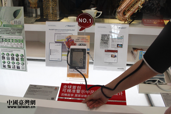 全球首創(chuàng)可精準(zhǔn)警示中風(fēng)可能性的血壓計(jì)。(中國(guó)臺(tái)灣網(wǎng) 郭慶娜 攝)