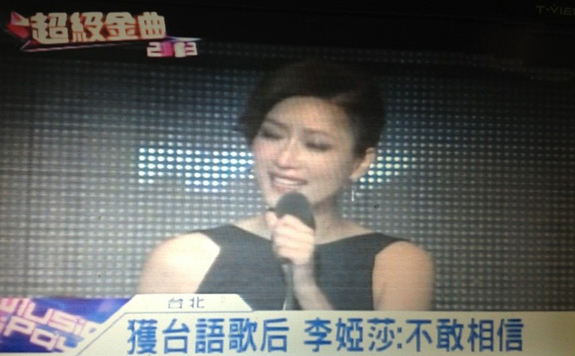 上海姑娘李婭莎獲臺灣金曲獎最佳閩南語女歌手獎。(圖片翻攝自臺灣電視媒體)