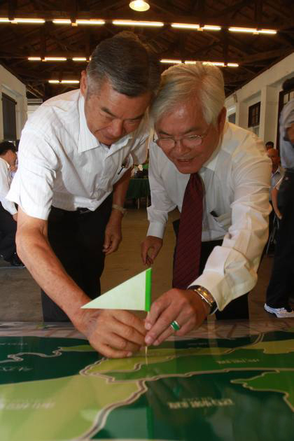 李進(jìn)勇插小綠旗在云縣各鄉(xiāng)鎮(zhèn)地圖上。(圖片來(lái)自臺(tái)媒)