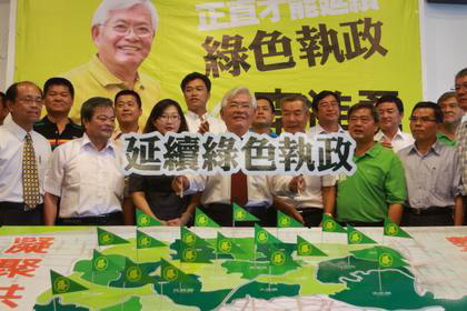 中國(guó)臺(tái)灣網(wǎng)7月8日消息 據(jù)臺(tái)灣媒體報(bào)道,臺(tái)當(dāng)局前“法務(wù)部政務(wù)次長(zhǎng)”、基隆市前市長(zhǎng)李進(jìn)勇今天(8日)上午召開(kāi)記者會(huì),率領(lǐng)20鄉(xiāng)鎮(zhèn)競(jìng)選團(tuán)隊(duì),宣布競(jìng)選下屆(2014)云林縣長(zhǎng),民進(jìn)黨云林縣執(zhí)政的鄉(xiāng)鎮(zhèn)長(zhǎng)出席站臺(tái)相挺。李進(jìn)勇說(shuō),讓我們凝聚共識(shí)、整體布局,打一場(chǎng)“延續(xù)綠色執(zhí)政,拒絕家族壟斷”的團(tuán)隊(duì)作戰(zhàn)。