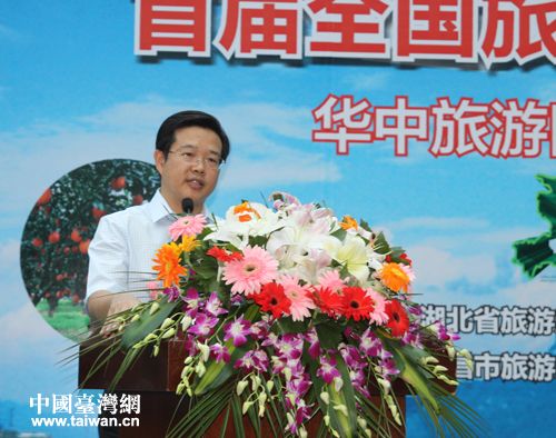 湖北省旅游局黨組書記、局長錢遠(yuǎn)坤致辭。(中國臺(tái)灣網(wǎng) 李杰 攝)