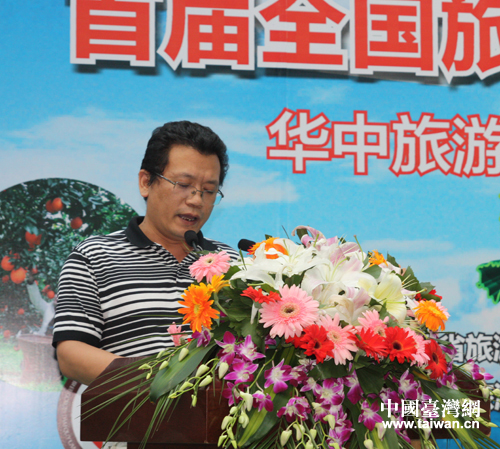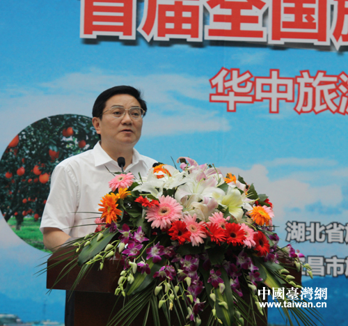 湖北省秭歸縣縣委書(shū)記劉曉華在啟動(dòng)儀式上致辭。(中國(guó)臺(tái)灣網(wǎng) 李杰 攝)