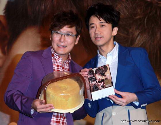 張信哲(左)現(xiàn)身送禮祝福光良推出新專輯。(圖片來自臺灣今日新聞網(wǎng))
