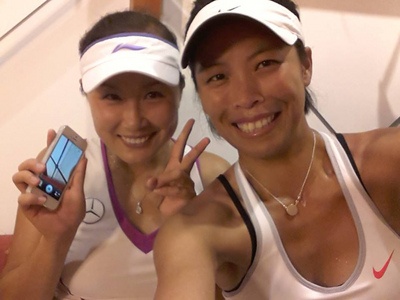 謝淑薇(右)與彭帥(左)在溫布爾登網(wǎng)球賽女雙決賽獲勝,奪得職業(yè)生涯第1個(gè)大滿貫冠軍。兩人打完比賽回到休息室,就先合照一張。(圖片來(lái)自臺(tái)媒)