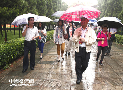 臺(tái)灣嘉賓參觀柏林禪寺。右二為臺(tái)灣團(tuán)團(tuán)長(zhǎng),財(cái)團(tuán)法人沈春池文教基金會(huì)副董事長(zhǎng)、畫家嚴(yán)雋泰。(中國(guó)臺(tái)灣網(wǎng) 高斯斯 攝)