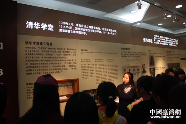 首屆海峽兩岸婚姻家庭子女夏令營日前在京開營。圖為營員參觀清華大學校史館。(《兩岸關(guān)系》雜志社 丁宇 攝)
