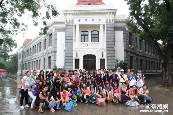 首屆海峽兩岸婚姻家庭子女夏令營日前在京開營。圖為營員在清華學堂前合影留念。(《兩岸關(guān)系》雜志社 丁宇 攝)