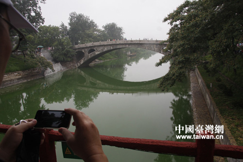 臺(tái)灣嘉賓們拍照趙州橋(中國(guó)臺(tái)灣網(wǎng)記者 蕪?fù)?nbsp; 攝)