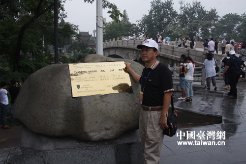 臺(tái)灣文化界人士在趙州橋前留影(中國(guó)臺(tái)灣網(wǎng)記者 蕪?fù)?nbsp; 攝)