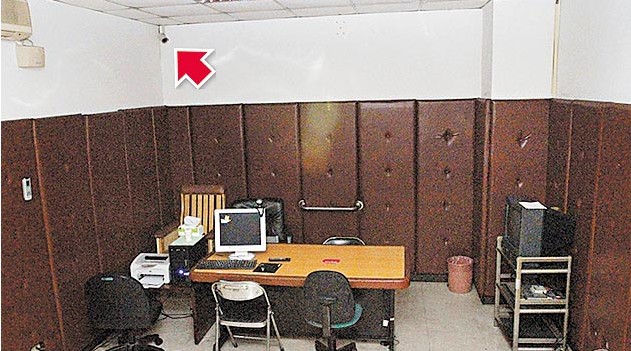 色警不知偵訊室監(jiān)視器(箭頭處)已修好,性侵過程被拍下。(圖片來自臺媒)