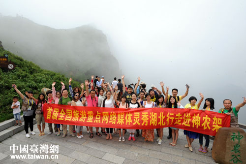 首屆中國旅游網(wǎng)絡(luò)媒體靈秀湖北行”記者走進神農(nóng)架生態(tài)旅游區(qū)。(中國臺灣網(wǎng) 李杰 攝)