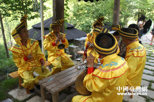 神農(nóng)架林區(qū)內(nèi)進行表演的民間藝人。(中國臺灣網(wǎng) 李杰 攝)