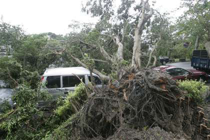 蘇力臺風肆虐,百年老樹被連根拔起。(圖片取自臺媒)