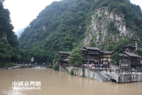 中國(guó)臺(tái)灣網(wǎng)7月13日宜昌消息 白墻青瓦石板路,小橋流水吊腳樓,13日,首屆全國(guó)旅游重點(diǎn)網(wǎng)絡(luò)媒體靈秀湖北行記者團(tuán)走進(jìn)最后一站——宜昌,當(dāng)天中午,記者團(tuán)一行乘船來到宜昌著名的5A級(jí)景點(diǎn)——三峽人家,感受了一場(chǎng)煙雨迷蒙的自然、文化夢(mèng)幻洗禮。