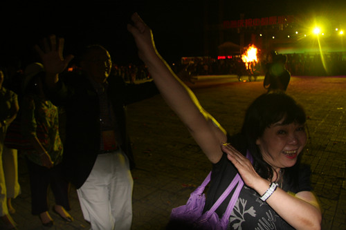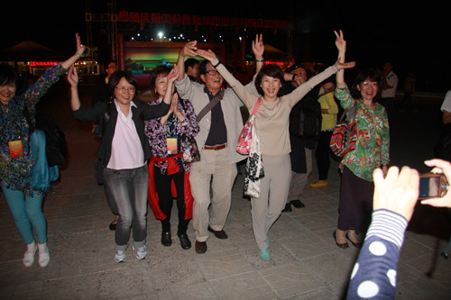 臺灣嘉賓在篝火晚會上盡情的舞著(中國臺灣網(wǎng) 蕪同 攝)