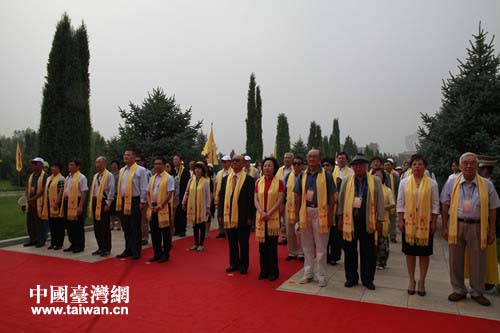 14日上午,“情系燕趙——兩岸文化聯(lián)誼行”百余位兩岸嘉賓在涿鹿縣黃帝城中華三祖堂前共同祭拜了中華民族的三大文明始祖——黃帝、炎帝、蚩尤。(中國臺灣網(wǎng) 高斯斯 攝)