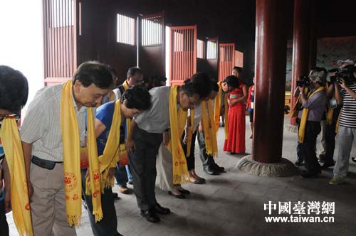 兩岸嘉賓在中華三祖堂祭拜中華民族的三大文明始祖——黃帝、炎帝、蚩尤。(中國臺(tái)灣網(wǎng) 高斯斯 攝)