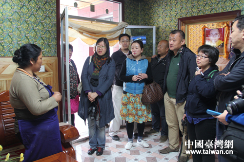 海內(nèi)外媒體一行走進藏民家中,了解其生活情況。(中國臺灣網(wǎng) 齊曉靖 攝)