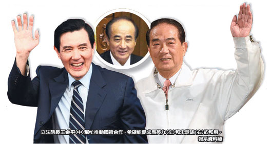 國民黨目前執(zhí)政聲勢低迷,加上國民黨主席選舉在即,國親高層之間若能達(dá)成和解,在臺灣“立法院”運作上,開啟國親合作的模式,也許能創(chuàng)造政績紅利,促成兩黨雙贏,一方面避免親民黨泡沫化的尷尬問題,外界也不致批評國民黨無情。