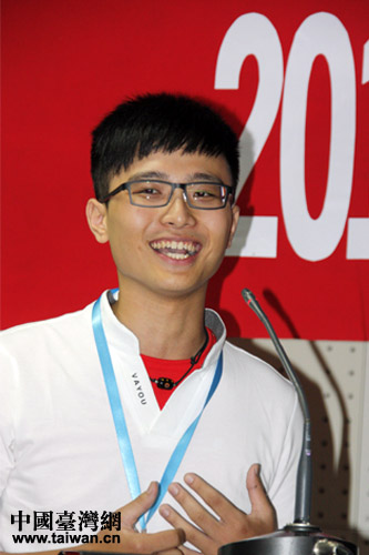 臺灣弘光科技大學(xué)的廖仲崴發(fā)言,感覺很親切,希望此行成為一生中美好的回憶。(中國臺灣網(wǎng) 郜利敏 攝)