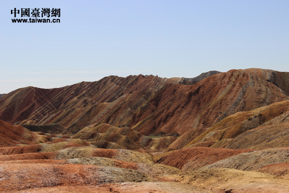 “海峽兩岸記者西北行”聯(lián)合采訪團(tuán)參訪張掖丹霞國家地質(zhì)公園,感受中國第一七彩丘陵神奇景觀。(中國臺(tái)灣網(wǎng) 王文英 攝)