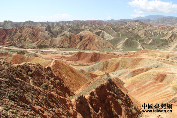 “海峽兩岸記者西北行”聯(lián)合采訪團(tuán)參訪張掖丹霞國(guó)家地質(zhì)公園,感受中國(guó)第一七彩丘陵神奇景觀。(中國(guó)臺(tái)灣網(wǎng) 王文英 攝)