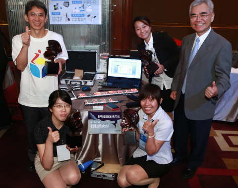 在獲獎人部分,聯(lián)合大學(xué)電子工程學(xué)系3位大學(xué)女生顏資容、黃筠庭、黃鈺珊作品“組合式LED行動電子廣告牌與無線傳輸之應(yīng)用”,由LED電子廣告牌發(fā)想,結(jié)合智能手持裝置,通過藍芽實時更新廣告牌訊息,也可以像拼樂高玩具一樣,將LED模塊任意組合。