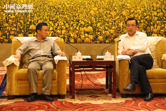 甘肅省委宣傳部長會見以楊毅為團(tuán)長的兩岸記者團(tuán)一行。(中國臺灣網(wǎng) 王文英 攝)