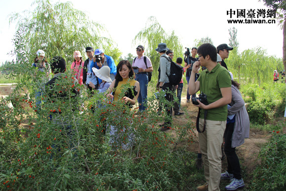 兩岸記者在中寧品嘗新鮮枸杞。(中國臺(tái)灣網(wǎng) 王文英 攝)