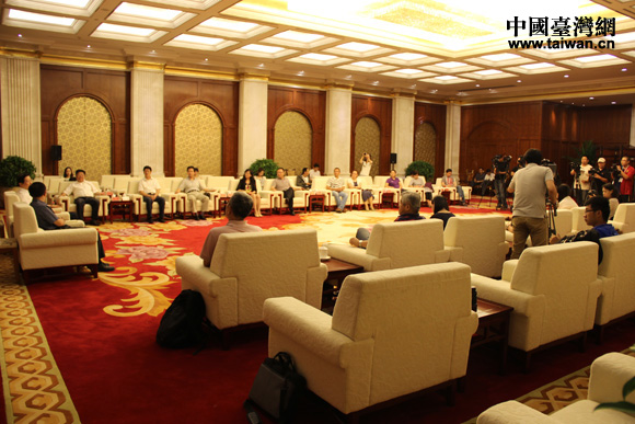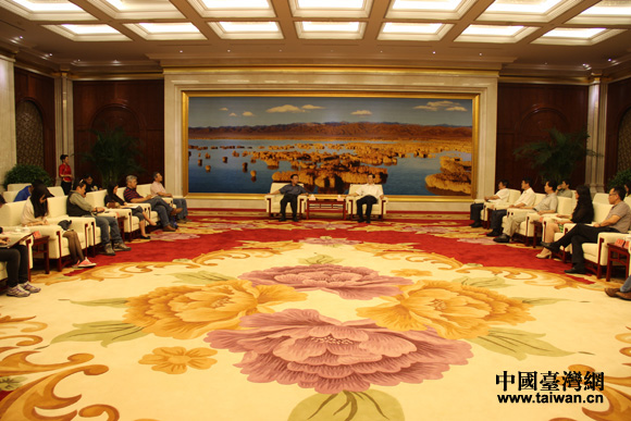 寧夏回族自治區(qū)領(lǐng)導(dǎo)會見“海峽兩岸記者西北行”聯(lián)合采訪團現(xiàn)場。(中國臺灣網(wǎng) 王文英 攝)