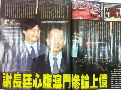 謝長(zhǎng)廷辦公室主任澳門(mén)豪賭 傳慘輸上億。(圖片來(lái)自臺(tái)媒)