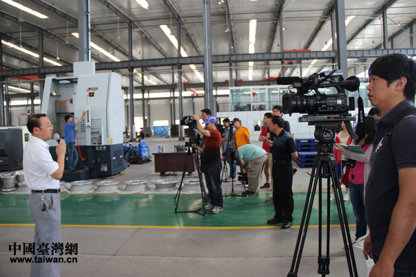 寧夏維爾鑄造有限責任公司負責人在車間向兩岸記者介紹情況。(中國臺灣網(wǎng) 王文英 攝)