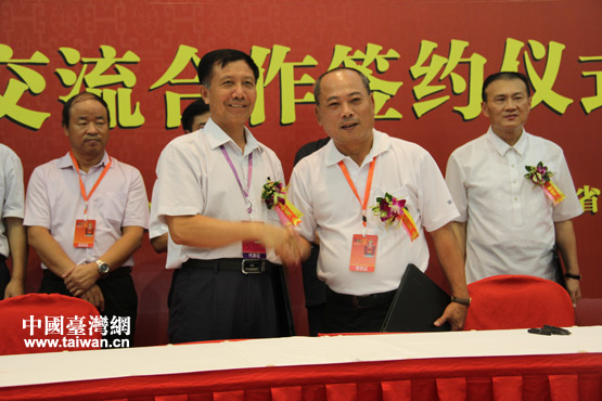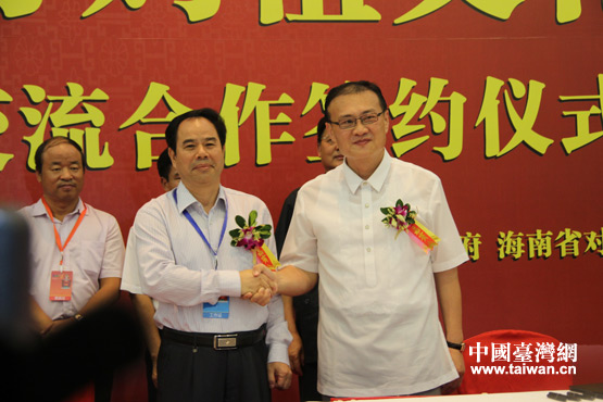 海南瓊海市潭門中心漁港與臺灣安平漁港簽約。(中國臺灣網(wǎng) 李丹 攝)