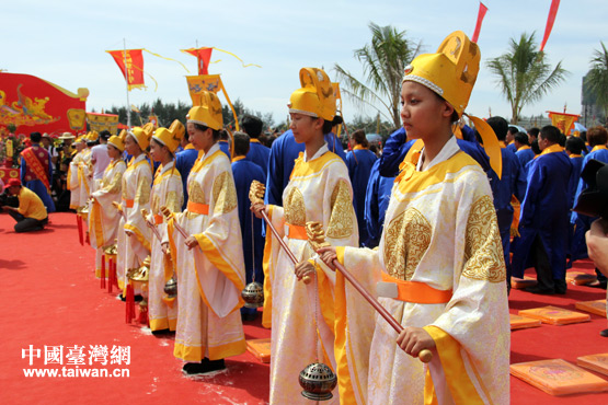 8月1日上午,2013兩岸媽祖佑南疆祈福祭典儀式在海南潭門港舉行。圖為祭典儀式現(xiàn)場(chǎng)。(中國(guó)臺(tái)灣網(wǎng) 李丹 攝)
