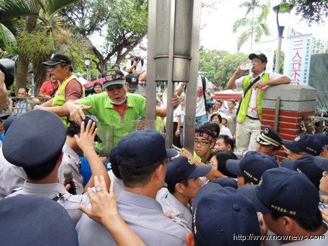 該社團(tuán)會(huì)員過于激動(dòng),又推又拉竟把臺(tái)灣“立法院”大門圍墻上的鐵欄桿推倒,企圖沖入,與警方發(fā)生推擠。