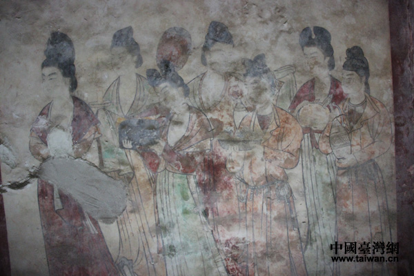 永泰公主墓內(nèi)的宮女圖壁畫。(中國臺(tái)灣網(wǎng) 王文英攝)