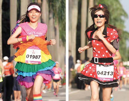 美津濃女性馬拉松11日清晨臺北登場,現(xiàn)場有如一場女性變裝PARTY。(來源:臺灣《中國時報》)