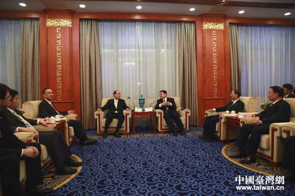 海峽兩岸關(guān)系協(xié)會(huì)會(huì)長(zhǎng)陳德銘13日在北京會(huì)見(jiàn)了臺(tái)灣;鶗(huì)董事長(zhǎng)林中森及其率領(lǐng)的臺(tái)灣媒體高層大陸參訪團(tuán)。(中國(guó)臺(tái)灣網(wǎng) 王偉 攝)