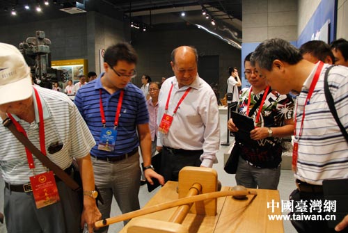 統(tǒng)促會海外會長會議代表駐足研究歷史文物 (中國臺灣網(wǎng) 吳曉寒 攝)